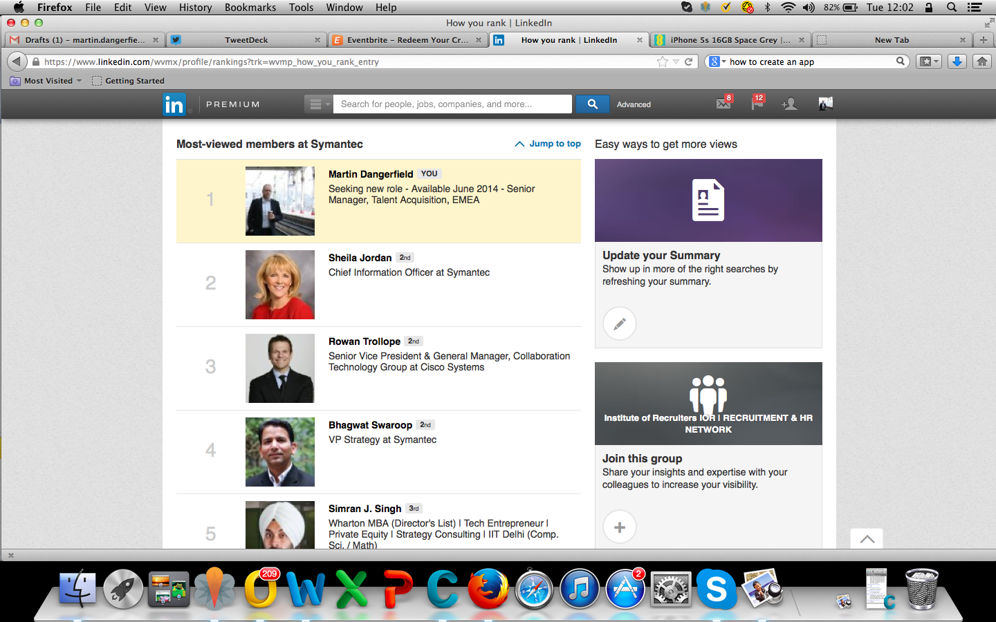 I recently posted an amazing fact. Amazing in my world anyway. You see I am (for the last seven days anyway) the most viewed linkedin profile in Symantec. As I write this there are 22,006 Symantec profiles and I am the most viewed. Not the CEO, COO, CMO etc. but little old me, armed with a fairly standard ‘non recruiter’ account, using linkedin pretty much as it was intended.